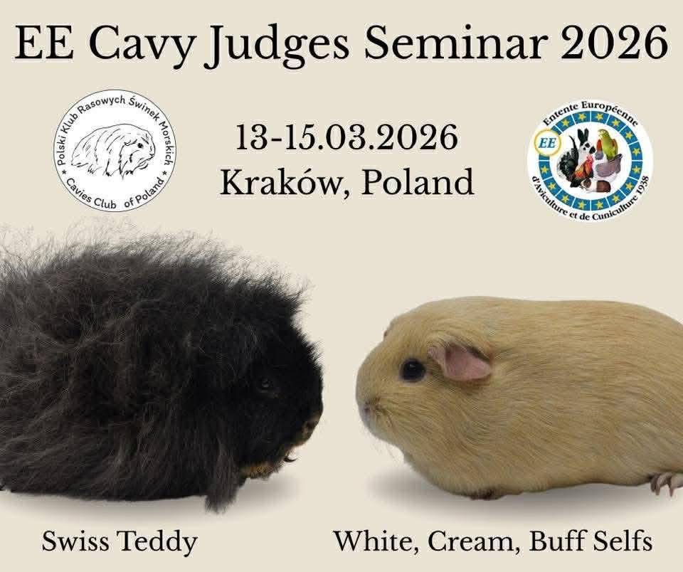 | Le 14 mars, les juges de la section des Cobayes se sont réunis pour un séminaire à Cracovie, en Pologne. 38 juges issus de 13 pays différents y ont participé. L’Association polonaise des Cobayes nous a accueillis, et leur juge Natalia Wrobel a fait une présentation sur la variété « Swiss Teddy », tandis que Jirka Kytner, de République tchèque, a présenté les variétés « Self white », « cream » et « buff ». Après les présentations, une évaluation en groupe a été menée, suivie d’une discussion finale comparant les notes attribuées. Les conclusions de ces discussions seront examinées par l’ESKC à Ségovie en mai. Un grand merci à Daniel Banasiak et à son équipe pour ce séminaire très bien organisé. Lena Tysk Présidente de la section Cobayes |